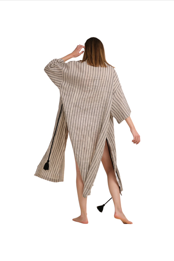This stylish robe is incredibly chic. It can be worn as a beach cover-up or over a pair of jeans to complete your look. Also perfect for a sexy at home robe. Made in Turkey. One size.