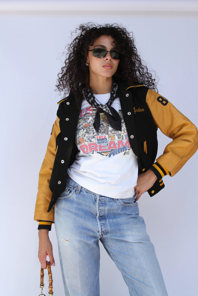 Black Wool Yellow Leather Varsity Letterman Jacket