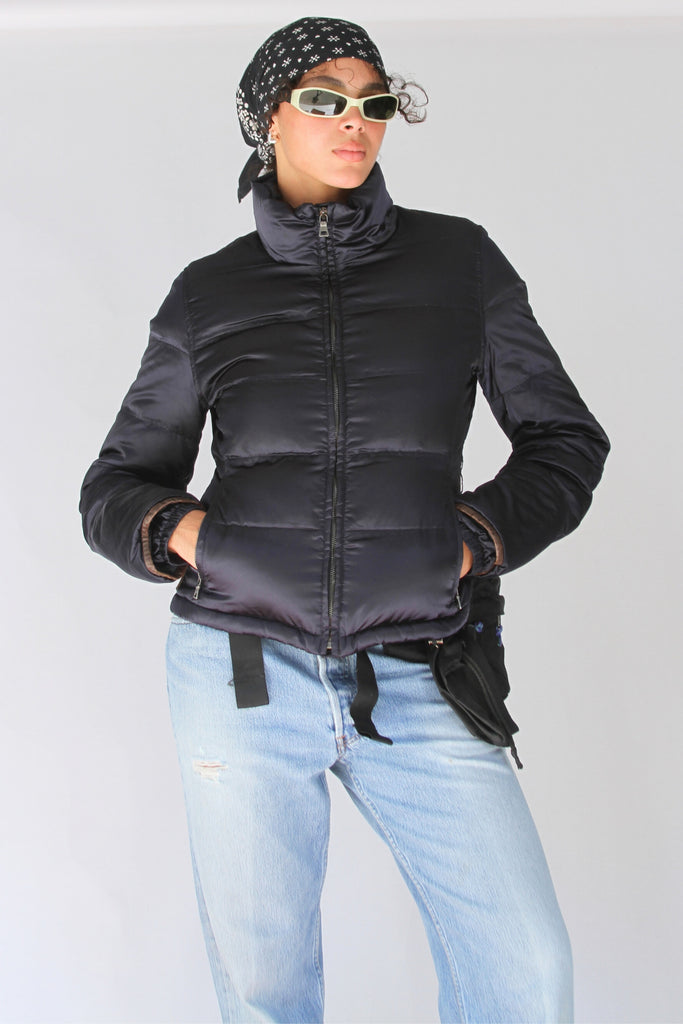 Prada Blue Nylon Leather Trimmed Down Ski Zip Puffer