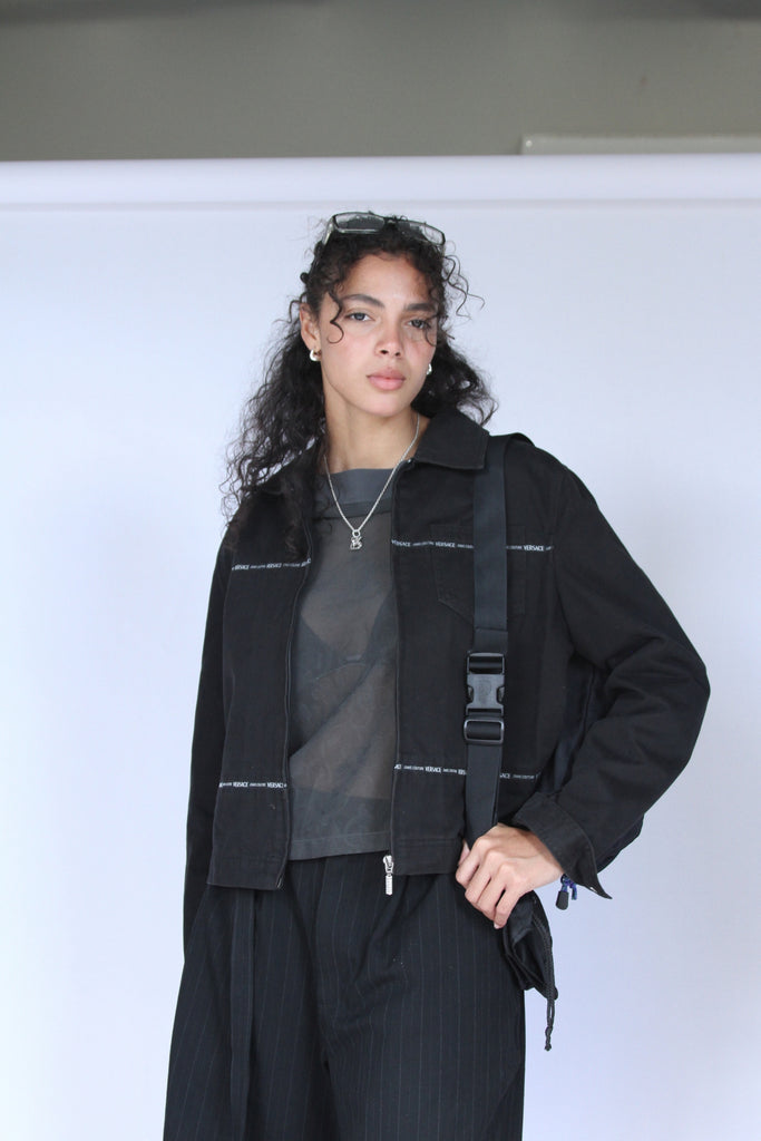 Black/Charcoal Emporio Armani Sheer Silk Mesh Top