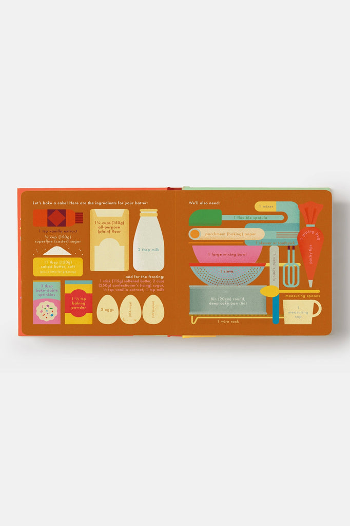 Make a cake from scratch with the next interactive board book in this globally bestselling series – mix, bake, and decorate without the mess! Invite young children into the kitchen with this toddler-friendly introduction to cooking.