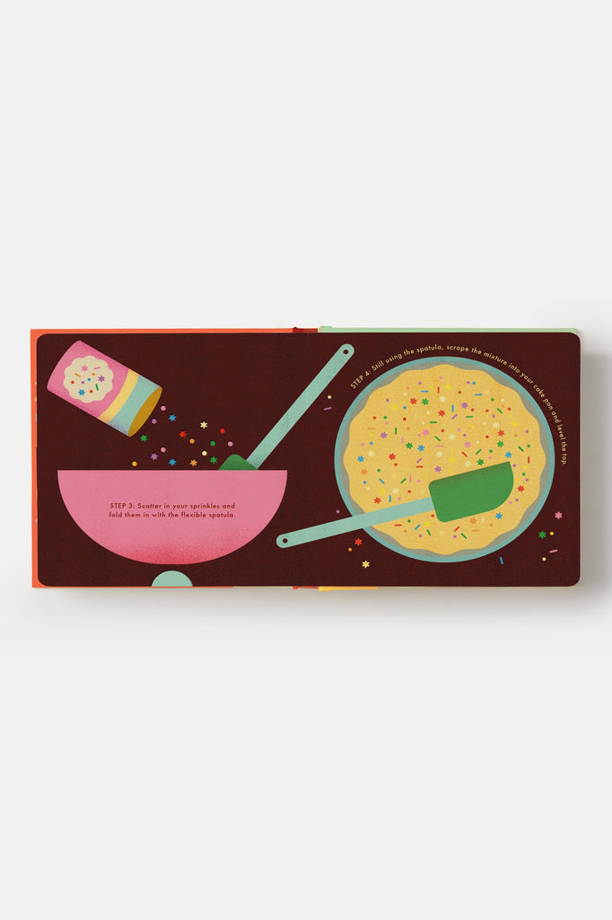 The book includes a real and fully tested recipe, so that parents and kids can bake a real homemade funfetti cake, as well. A sweet addition to the beloved Cook in a Book series, Cake! is one hundred percent adult-free, danger-free, and mess-free. Making a cake has never been so independent!
