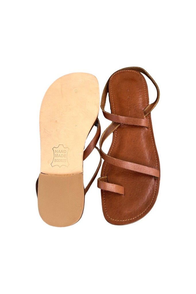 Introducing our SuSu Sandals in Sedona, crafted with exquisite attention to detail. These brown leather sandals feature a minimalistic design, with a delicate ring of leather over the big toe and a long loop around the foot, allowing for a nearly barefoot experience in the warmer weather. As you wear them, the leather strap at the back will naturally loosen (slightly) over time, ensuring a perfect slip-on fit that molds to your foot with every step. This versatile style effortlessly transitions from day to night, making it the perfect companion for any occasion.