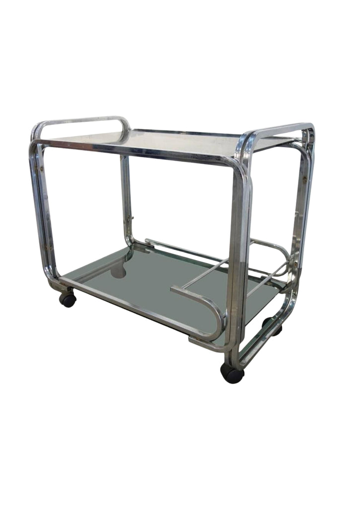 Mid-Century Chromed Steel and Smoked Glass Bar Cart
