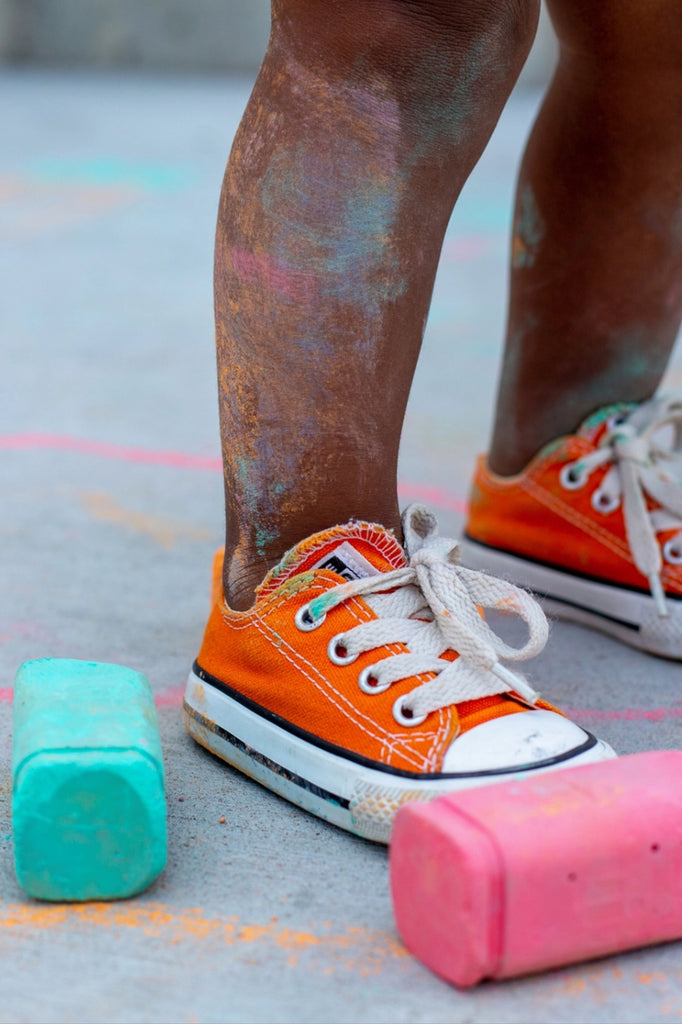 A designer set of 5 oversized sidewalk chalks—perfectly sized for toddler hands and bold enough for big kid masterpieces. Our vibrant, not-so-basic color palette makes every sidewalk pop.