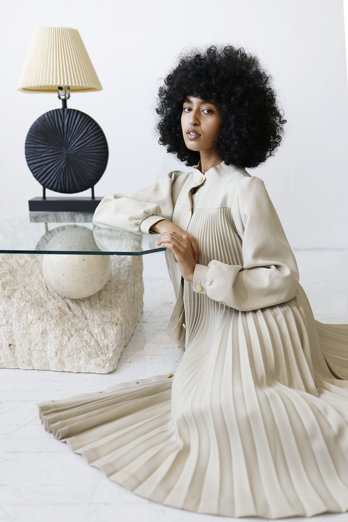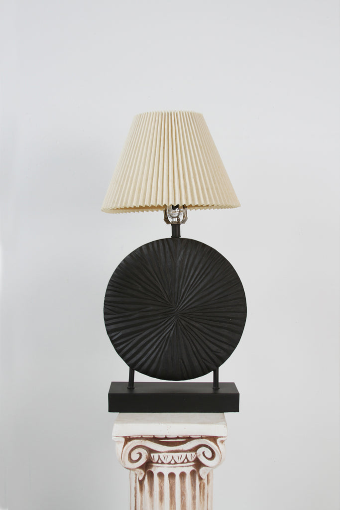 Post Modern Wood & Chrome Table Lamp with Pleated Lampshade